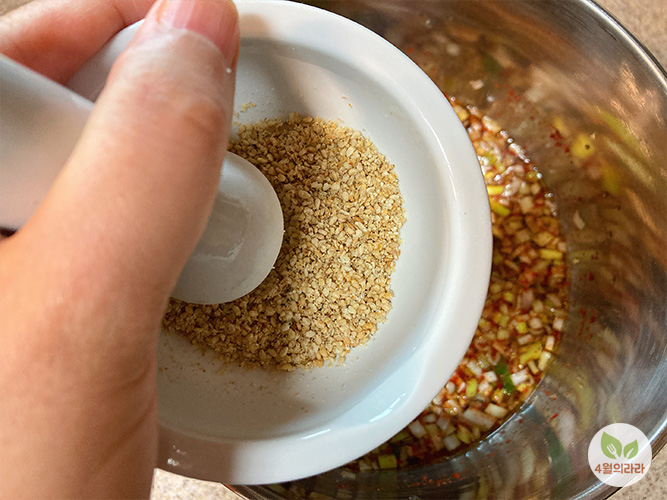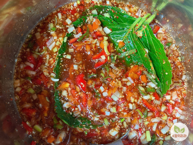 한 장씩 양념 바를 필요 없이 그냥 뭉텅이로 잡아서 양념에 푹 적시고 깻잎 위에 건더기 양념 좀 올려주면 되니 정말 간단해요.