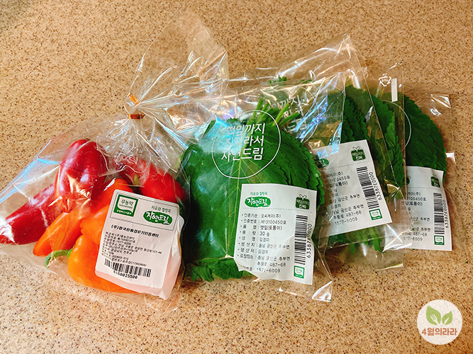 오늘 재료는 깻잎 100장과 파프리카 준비했어요. 원래 붉은 고추를 준비해야 하는데, 옆지기 위해서 고추 대신 꼬마 파프리카 준비합니다.