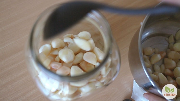 소독한 유리병에 마늘을 모두 담아주세요.