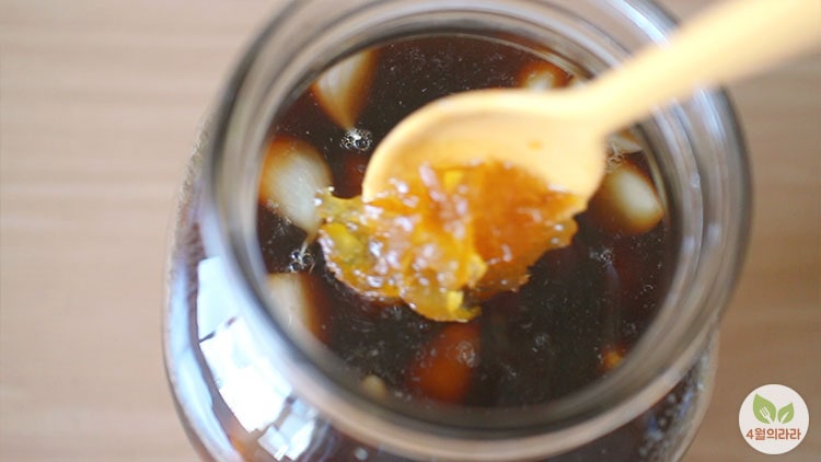 4. 장아찌국물을 만들어 마늘에 붓고, 유자청을 넣어 마무리한다.