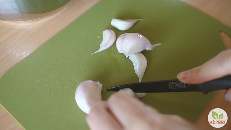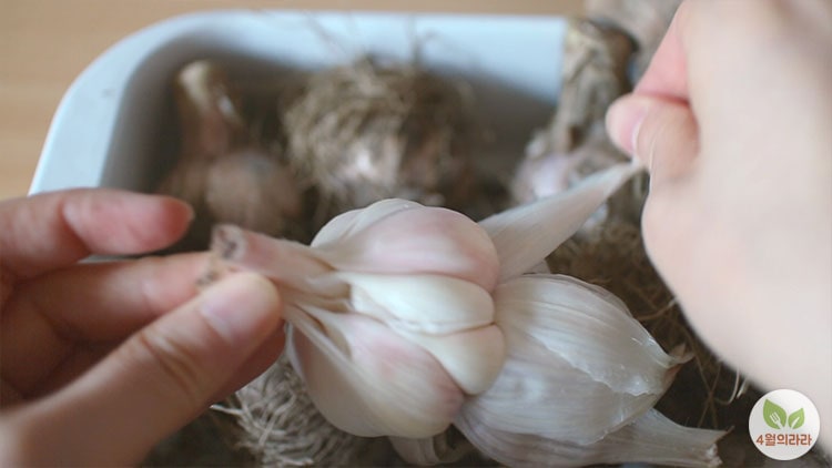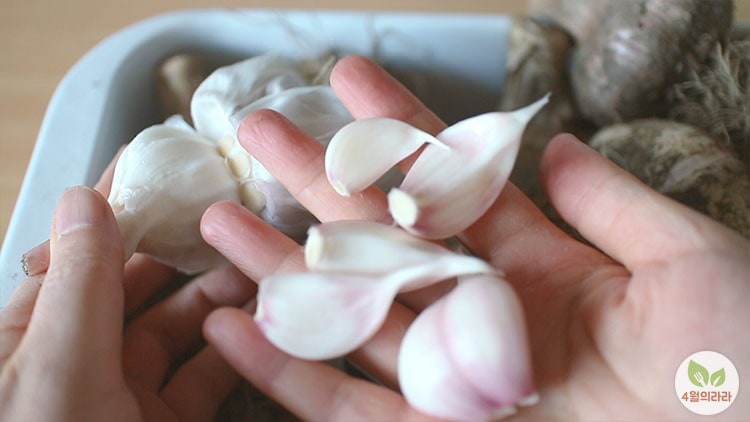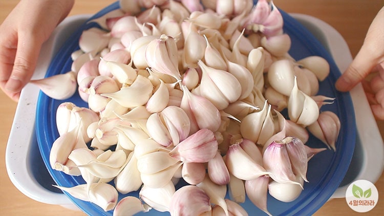 1. 마늘의 겉껍질을 벗기고 두세 쪽씩 떼어낸 후 씻는다.