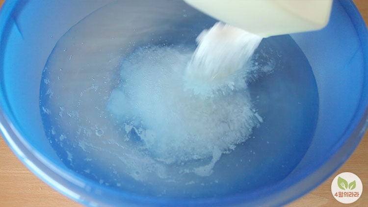 볼에 물 2리터에 천일염 250g으로 비율은 4:1로 맞춰주시면 됩니다.