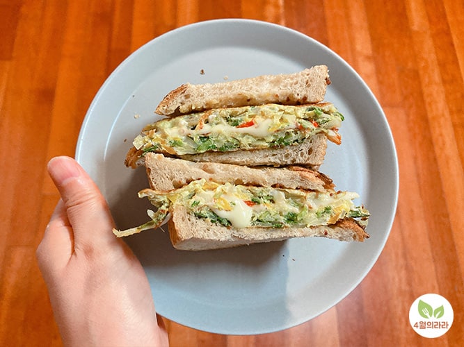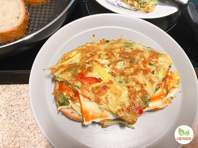 생각보다 어렵지 않아요. 달걀과 냉장고에 돌아다니는 채소, 치즈, 빵만 있으면 금방 만듭니다. 노력에 비해 맛이 좋아서 만족하실거에요.