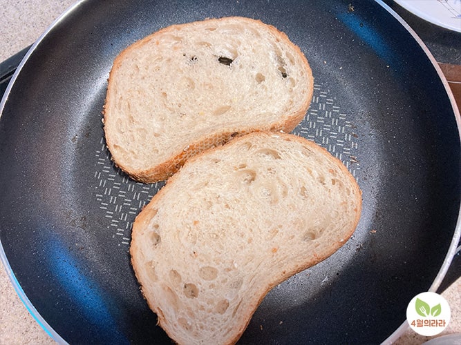 전 팬에 빵을 앞뒤로 구워줬는데, 토스터기를 이용하셔도 좋습니다.