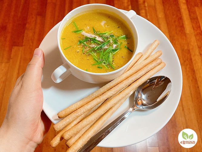 단호박스프만들기 그리시니와 함께 아침식사로 좋아요~