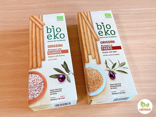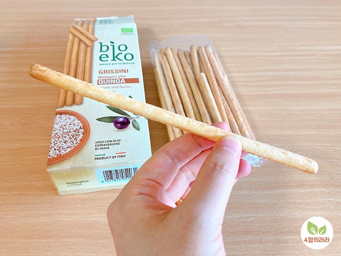 두 가지 그리시니인데, 슈퍼곡물인 퀴노아와 파로가 들어 있어서 영양이 풍부합니다. 두 가지 맛이 서로 다른데, 각각의 매력이 있는 맛이라 다 맛있습니다. 무엇보다 막대형태라 재밌고, 바삭바삭 씹히는 게 식감이 맘에 듭니다.