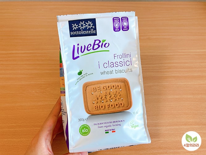 하나 더 소개하자면 이건 프롤리니, 이 제품도 이태리 비건쿠키인데, 달걀과 우유, 버터가 들어 있지 않아요. 더불어 논지엠이고, 방부제나 화학성분이 전혀 들어있지 않은 유럽에서 유기농 인증을 받은 제품입니다.