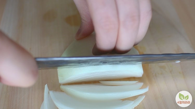 김치 양념에 들어갈 양파 반 개를 갈아주세요.