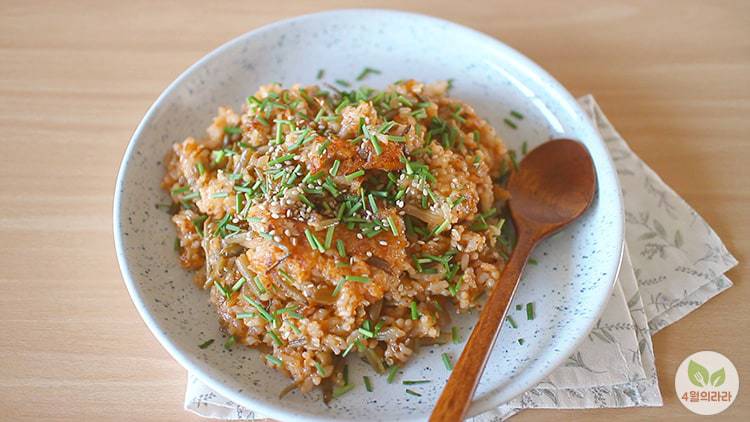 이건 고구마줄기김치볶음밥입니다. 고구마줄기 쫑쫑 썰어 밥이랑 볶아보세요. 김칫국물도 잊지 마시고요. 김칫국물은 깍두기와 궁합이 맞는 곰탕이나 순대국밥, 설렁탕 등과 같은 메뉴랑 잘 어울리니 함께 드셔 보세요.