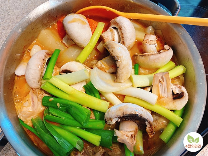 당면이 익을 무렵 나머지 버섯과 대파를 넣어 한소끔 끓여주면 완성입니다. 모자란 간은 소금이나 국간장으로 해주세요.
