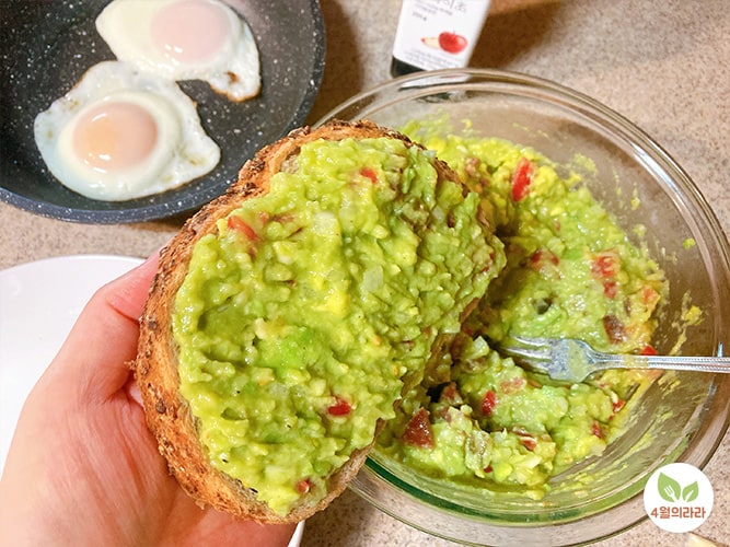 과카몰리 올려 오픈샌드위치 즐겨보세요~