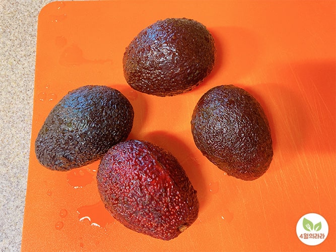 아보카도를 사면 잘 익었는지 똑똑 물어볼 수도 없고, 난처하죠. 겉 껍질이 진한 갈색을 띄고 손으로 눌러 물컹할 때가 익은 거에요. 꼭지가 손으로 잡으로 똑 떨어지고, 손으로 눌러 부드럽게 들어가면 익으거랍니다.