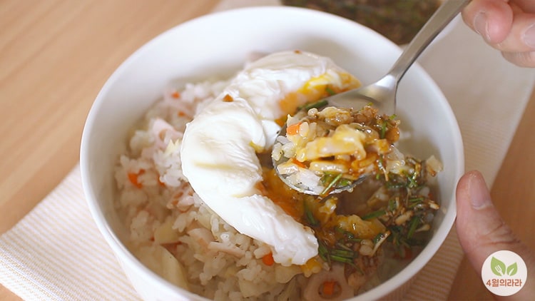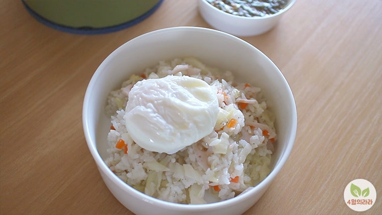 완성된 양배추밥 퍼담고 수란도 올리고, 달래장과 함께 차려냅니다. 달래장 만드는 건 찍지 못했어요. 미리 만들어둔 거라... ㅜ 달래 송송 썰어 맛간장과 육수 조금 넣고 깨 갈아 넣고, 참기름 넣고 마무리, 마늘이나 달달한 거 괜찮다면 더 추가하셔도 됩니다.