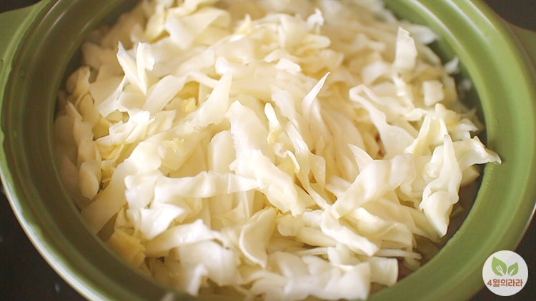 오늘의 메인인 양배추, 초점 어쩔~~~ 3년 차 유튜버의 실력이랍니다. ㅋㅋㅋ 수동 초점으로 촬영하다 보니 요렇게 갑자기 올라오는 건 최악이에요. 아~ 카메라 바꾸고 싶다~ ㅜㅜ 양배추 양껏 수북하게 올려줍니다. 뚜껑 덮어 5분간 더 끓인 후 완전히 불을 끄세요. 그리고 10분간 그대로 둡니다. 전 전기레인지 하일라이트에서 만들었어요. 잔열을 이용해서 만든 거랍니다.