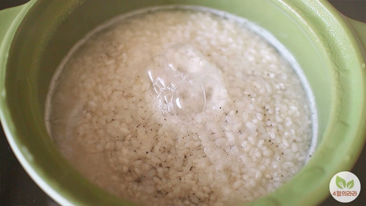1. 불린 쌀과 물, 톳가루를 넣어 센불에서 끓인다.