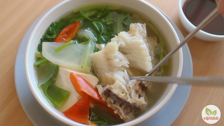 6. 완성된 맑은대구탕을 그릇에 담아낸다.