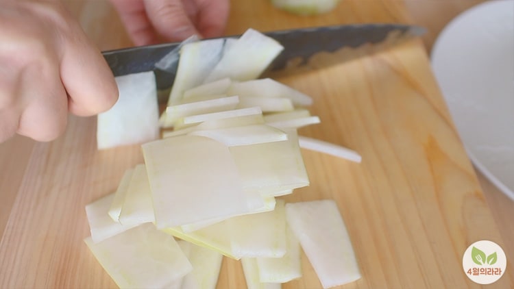 이맘때의 무는 인삼보다 좋다고 해요. 무 300g 정도 나박나박 썰어서 준비합니다.