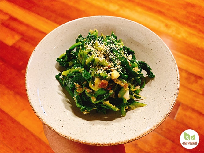 완성된 유채나물에 들깨가루 솔솔 뿌려주고 마무리~ 와~ 맛난 봄나물 여러분 식탁으로 불러 보세요. 요즘 몸이 무겁고 잠도 쏟아지고, 피곤하신가요? 봄이라 그래요. 사계절이 있는 우리나라 아름답죠. 일교차 심하고 계절의 변화가 심한 게 몸에 큰 무리를 주기 때문입니다. 이럴 때 제철음식 많이 챙겨 드세요. 봄나물 많이 챙겨 드시면 식곤증도 봄의 피곤하고 나른함도 많이 좋아지니 우리 많이 챙겨보기로 해요. ^^