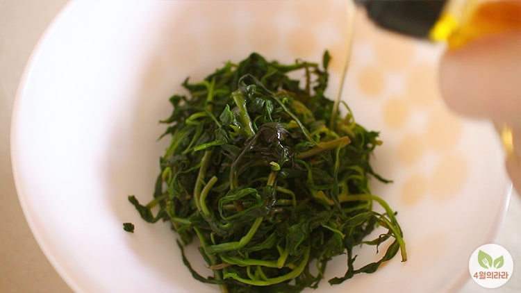 까나리액젓 1t, 생들기름을 넣어 조물조물 무쳐줍니다. 간을 보고 싱거워서 소금 1꼬집 추가해주었어요.