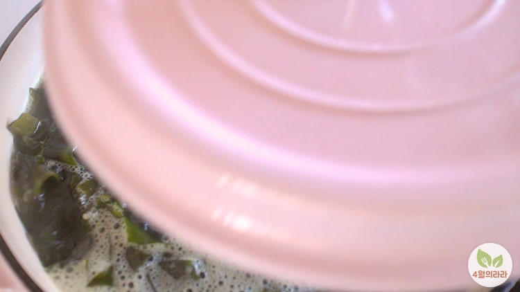 이대로 뚜껑 덮어 바글바글 끓여주세요. 미역국은 주로 저녁에 끓여서 하룻밤 베란다에 두었다가 담날 아침에 다시 한 번 끓여 먹는데, 그럼 정말 맛있거든요. 미역국은 오래 끓여야 맛있다는 사실~ 참고하시고요.