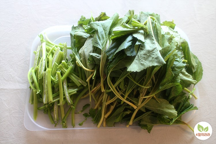 굵은 줄기는 반으로 갈라주고, 줄기와 이파리를 따로 떼어 손질해주었습니다. 이제 물로 깨끗하게 씻어주세요. 예전에는 아욱을 바락바락 주물러서 씻어주었는데, 요즘 대부분 하우스 재배라 질기지 않아 그냥 끓여도 좋더라고요.