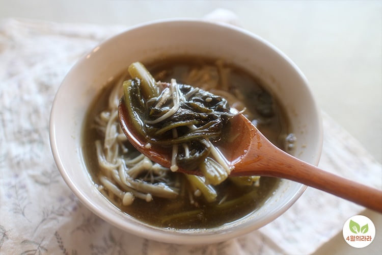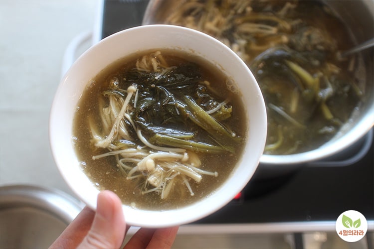 구수한 된장에 아욱과 팽이버섯만 넣어 담백하게 끓인 아욱국입니다. 이게 뭐라고 참 맛있어요. 오래 끓이니 아욱이 정말 부드럽고 맛있더라고요. 만들기도 어렵지 않으니 천천히 구경해 보세요.