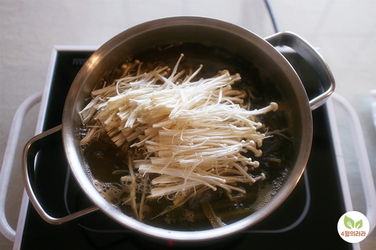 그동안 아욱국에 들어갈 팽이버섯만 준비해둡니다.
