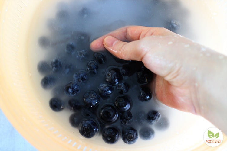 물을 붓고 두어 번 흔들어가며 씻어줍니다. 관해농의 블루베리라면 마지막 헹굼물에 식초나 구연산을 넣어주는 것도 좋은 방법입니다. 수용성이라는 사실을 잊지 말고 빠르게 씻어주세요.