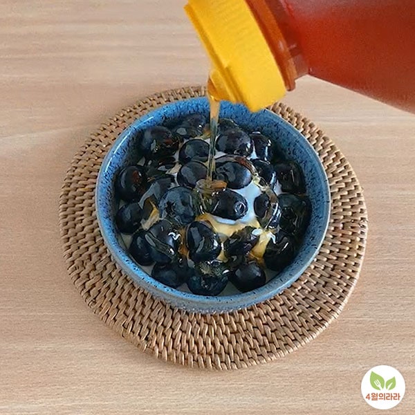 그릭요거트 한 통에 생블루베리 가득 담고, 하루치 다 담은 것 같아요. 여기에 꿀도 두어 바퀴 뿌려주고,