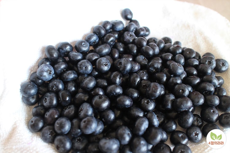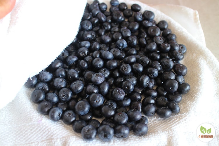 베이킹소다를 이용해 씻은 블루베리는 깨끗한 행주에 담아 물기를 닦아냅니다.