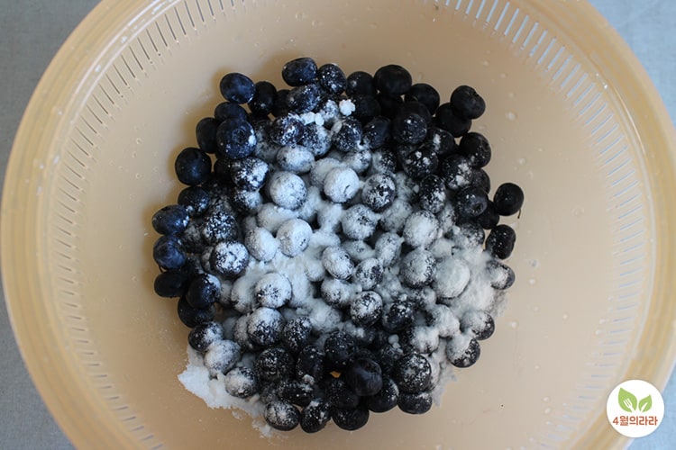 블루베리의 안토시아닌이라 물에 녹는 수용성이라 되도록 빨리 씻어줘야 해요. 전 베이킹소다 이용해서 빠르게 씻어주었습니다.