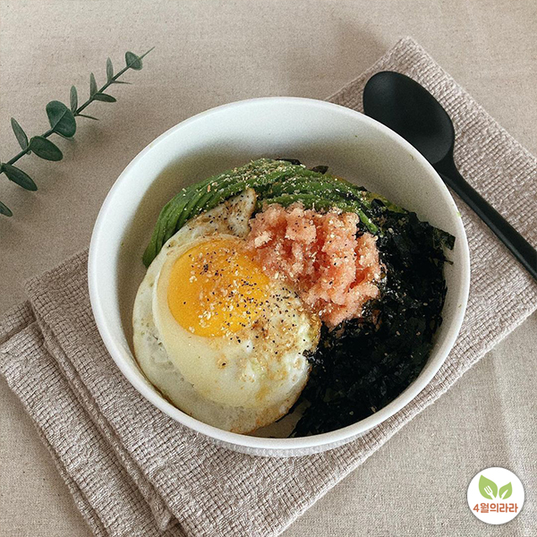 명란아보카도비빔밥에 들어가는 건 별다른 게 없어요. 밥을 아래에 깔아주고, 아보카도 썰어 올리고, 계란 후라이도 하나 해서 올리고, 여기에 조미되지 않은 구운김을 잘라 올리고, 명란젓을 올려줍니다. 위에 간 참깨와 후추를 올려주면 완성입니다. 참기름 넣어도 좋은데, 전 아보카도 있으니 생략했어요. 짭조름하면서도 고소하니 정말 맛있답니다.